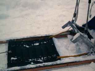Schlitten Krallenbremse und Bremsmatte Hund im Geschirr