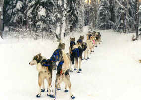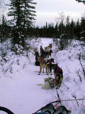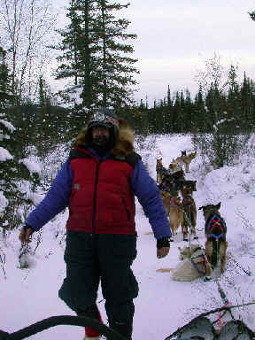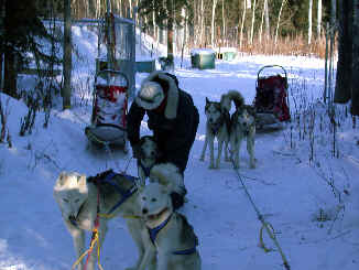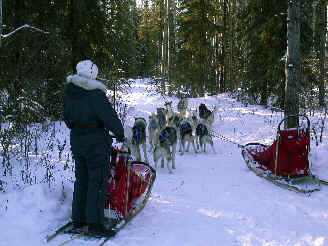 Dave Monson beim Yukon Quest 2002 bei einem Break nahe unserer Cabin Schlittenhundeschule Wer noch keine Erfahrung im Umgang mit Schlittenhunden und dem Fahren eines Schlittens besitzt, erhält einen Einführungsunterricht. Erst wenn er in der Lage ist, ein angemessenes Gespann in Begleitung hinreichend sicher zu führen, werden zunächst kürzere Trainingsfahrten unternommen. Erfahrungsgemäß können am Ende einer Woche dann bereits Touren, evtl. sogar mit Übernachtung, unternommen werden. Für Schlittenhundeschule und Touren stehen 5 Hightec-Schlitten von Bernd Weschle zur Verfügung.